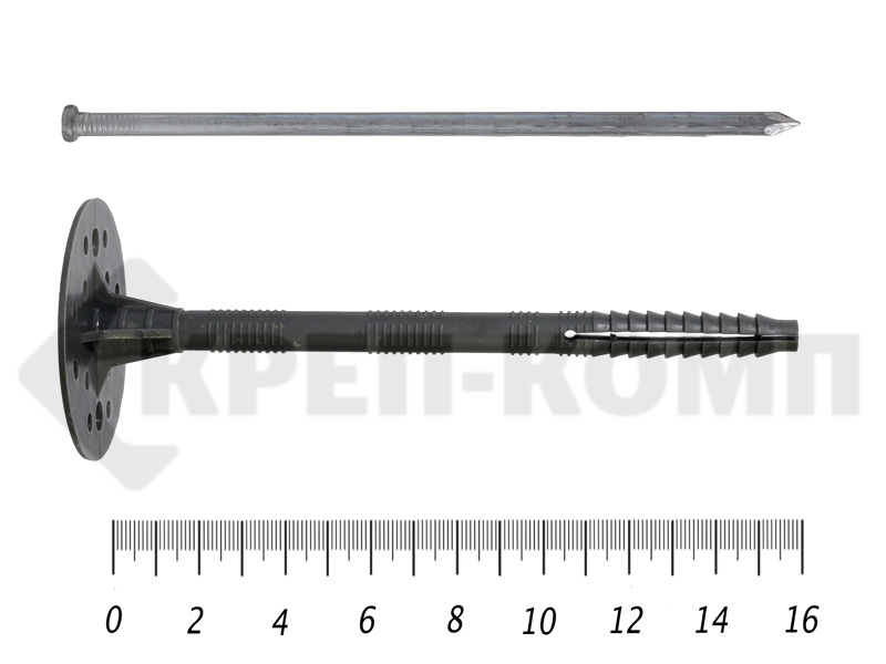 Дюбель для теплоизоляции представляет собой систему крепежа, который состоит из распорного дюбеля и гвоздя.