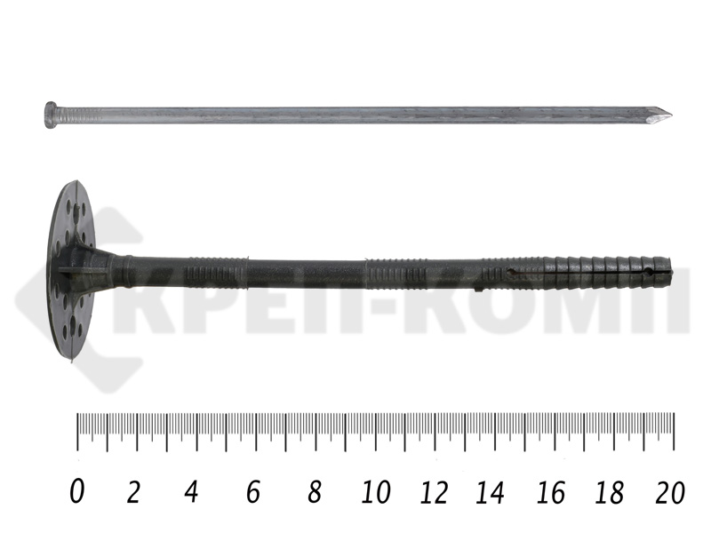 Дюбель для теплоизоляции представляет собой систему крепежа, который состоит из распорного дюбеля и гвоздя.