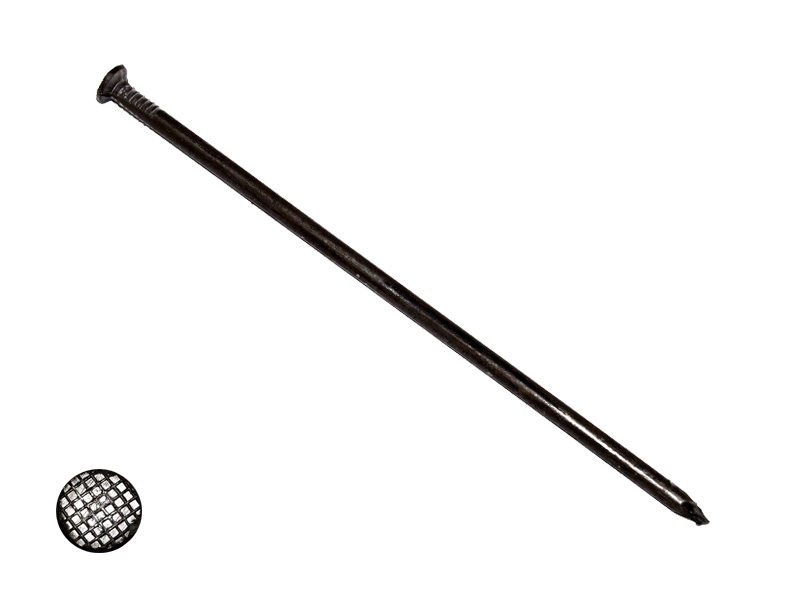 с элементами рельефа на стержне для устойчивости гвоздя в основании.