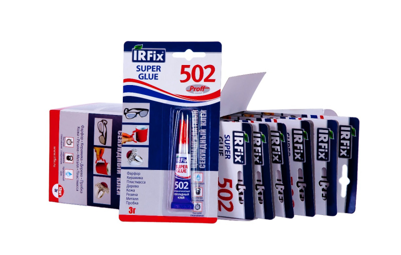 Супер-клей 3 гр., бесцветный секундный, Super Glue 502, IRFIX (1шт.) IRFIX